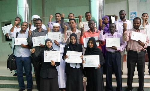 المدرب محمد الفاتح والأستاذة أمل سمير والأستاذ محمد الواثق بتوزيع الشهادات