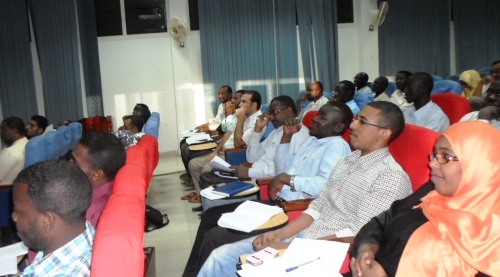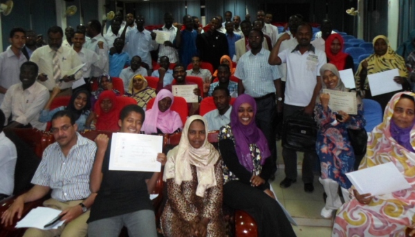 المدرب الفاتح مساعد يتوسط المتدربين في ختام الدورة التدريبية