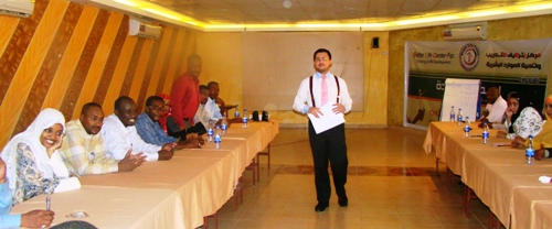 الحفل على كلمة مدربي الدورة أ- الصادق و قيع اللهو المدرب الاستشاري د. توني بيتر على المجهود
