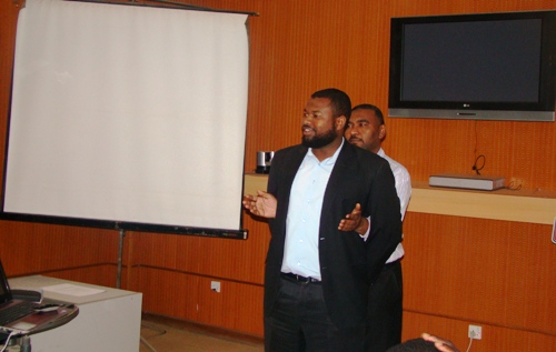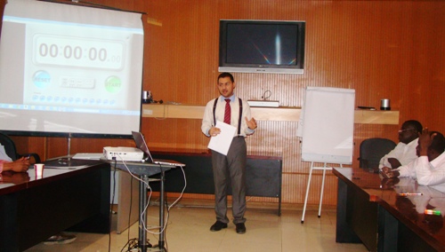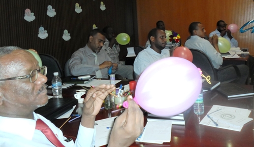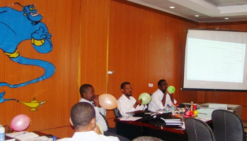 مع المدرب أثناء تقديم التمارين و الاستبيانات أمام الحاضرين .