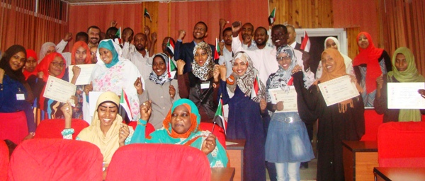 تذكاريه مع العلم السوداني و الشهادات في جو من التفاؤل و البهجة وتوقعات بعام