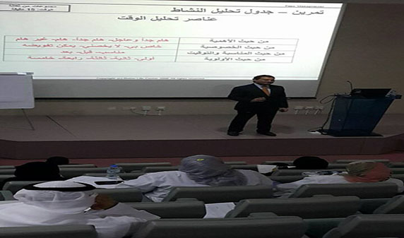 حيث كانت الإستبانات والتمارين العملية المختلفه تظهر لكل منهم موقفة من إدارة الوقت وليتحول المفهوم من إدارة لوقت إلى إستثمار الوقت لان الوقت مورد هام يجب إستثمارة