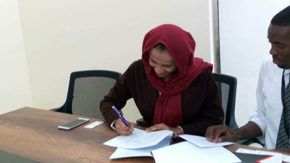 الاستاذه نازك محمود وذلك بمقر رئاسة بنك الخرطوم وتهدف الاتفاقية لتسيهل التدريب للمجتمع