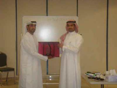 و قام المتدربين بتكريم الدكتور العبرى بدرع كرستال على المجهود المقدر و الفائده المتحصلة من هذه الدورة و بالانابة عنهم قدم الدرع الاستاذ عبد الرحمن القحطانى للدكتور العبرى .