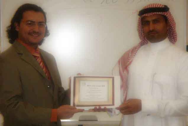 (المدرب الإستشاري توني بيتر أثناء تقديم عضوية كبير المدربين للدكتور العبري )
