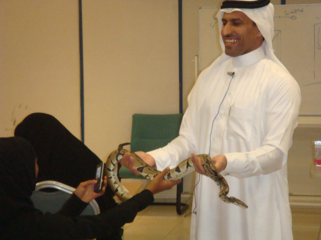 كانت الدورة الأولى للمستوى الأول متميزة بحضور ثعبان بطول متر و نصف تقريبا حيث قدمه المدرب الدكتور حمود العبرى كفاكهة البرنامج للمتدربين ليزيل خوفهم من هذا المخلوق الذي يخاف منه البعض ,كما أشار الدكتور إلى أن الخوف المرضى يمنعنا من الاستمتاع بهذه الحياة لكن هنالك الخوف و الطبيعي و هو مهم و يجب أن يكون