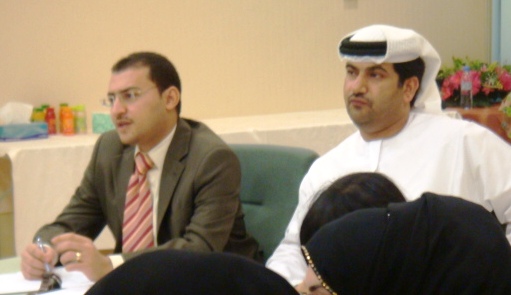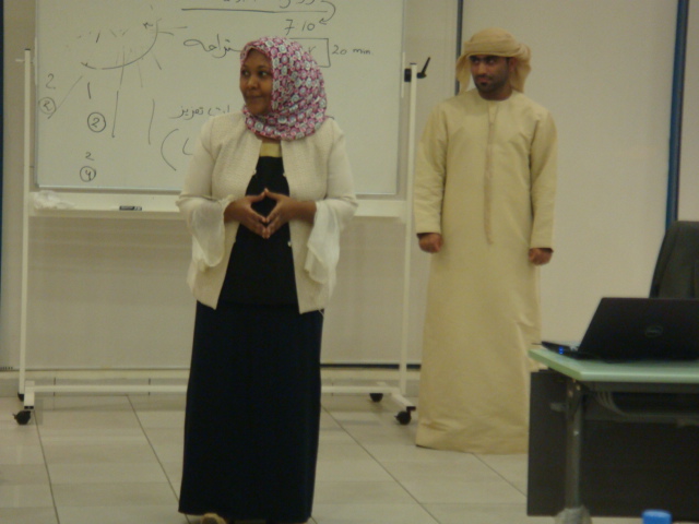 المتدربة ايمان و المتدرب راشد يتلقون توجيهات اثناء التدريب