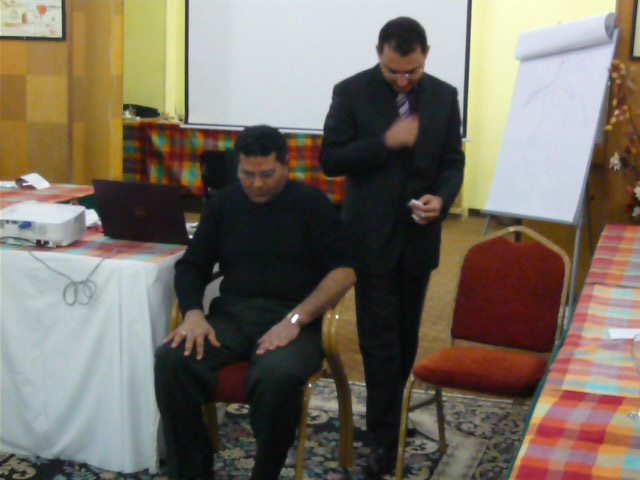 وتم تطبيق تقنيه العلاج بالتفكير في نهاية الورشة على حالتين من الحضور أحداها كان طبيب و بعد تطبيق التقنية عملياً أذهل المدرب الحضور بسهولة تطبيق التقنية على كل شخص خلال اقل من دقيقتين عن طريق افراز اللعاب بكثرة والسيطرة على تفكيره بتخدير المنطقة المحددة من الجسم .