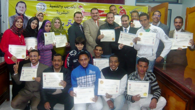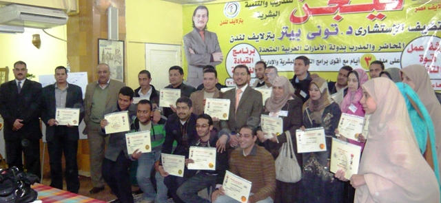 (المدرب الاستشارى / تونى بيتر مع المتدربين بعد تسليم الشهادات بسوهاج)