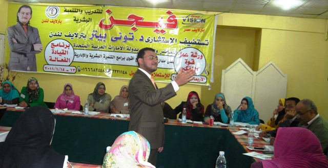 (المدرب الاستشارى /تونى بيتر اثناء القاء الدورة بسوهاج وجانب من السادة الحضور)