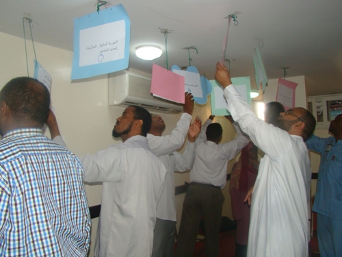 لعبة المعلقات : تم تعليق مجموعة من الأجابات بسقف القاعة وتم توزيع مجموعة من الأسئله على المتدربين ليتم تحديد الاجابة الصحيه من بين الجابات الموجودة على المعلقات و يكون صاحب اكثر اجابات صحيحة هو الفريق الفائز .