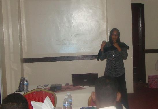 (المدربة المساعدة هناء يوسف اثناء تقديم العرض الحصول على رتبه مدرب خبير)