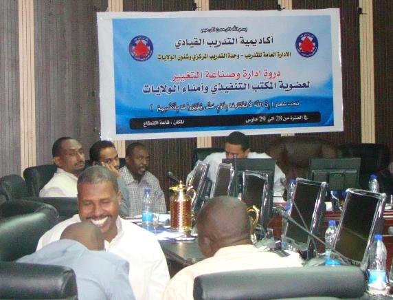 شهد مجلس إدارة أكاديمية التدريب القيادي ، ختام دورة إدارة وصناعة التغيير للفئة القيادية، التي نظمها مركز بترلايف للتدريب و تنمية الموارد البشرية بالتعاون مع أكاديمية التدريب القيادي و التي قدمها المدرب الاستشاري / توني بيتر في الفترة من 27-29 من مارس بقاعة اجتماعات مجلس الإدارة العامة للأكاديمية ، بحضور رئيس مجلس إدارة الأكاديمية الأستاذ جمال محمد ورؤساء مجلس إدارة الأكاديمية بالولايات وأعضاء المكتب التنفيذي وأمناء الولايات تحت شعار ( ان الله لا يغير ما بقوم حتى يغيروا ما بأنفسهم )) .