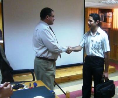 ( احد المتدربين يقوم بتمثيل دور البائع مع المدرب د/محمد مصطفى)