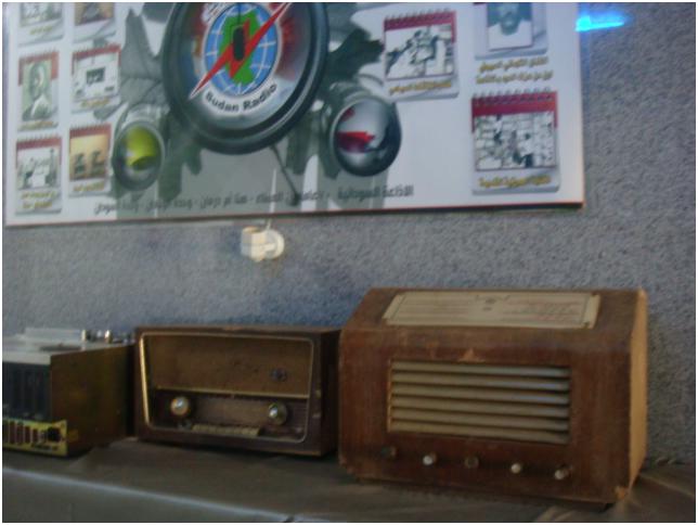 صورة لبعض اجهزة الراديو القديم من زمن الخمسينات داخل اذاعة البيت السوداني