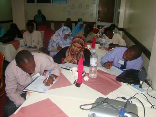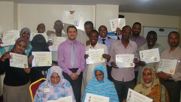 ( مجموعة المتدربين يتوسطهم المدرب في ختام الدورة )