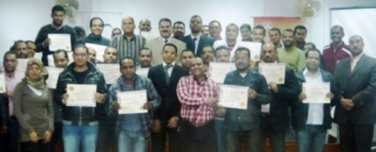 (المدرب د.محمد مصطفى وسط المتدربين فى ختام الدورة بعد تسليم الشهادات )