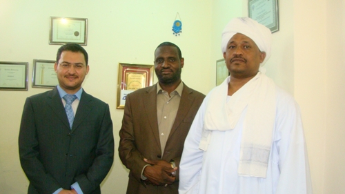 ( الوزير عبد الماجد يتوسط الاستاذ عصام عبد الله و الدكتور توني بيتر )