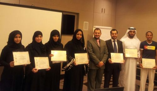 المتميزين في ختام الدورة التدريبية يتوسطهم الاستشاري توني بيتر )