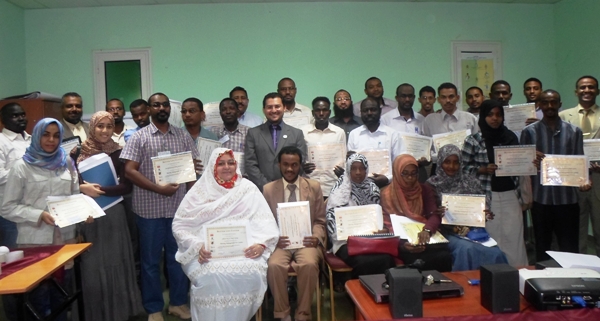 المدرب يتوسط الحاضرين في ختام الدورة التدريبية