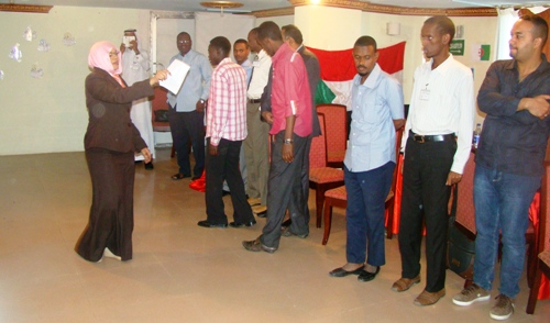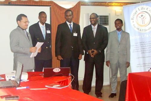 مديرة الدورة - انتصار فرح و تعليمات حاسمة قبل بدء التمرين السودان و السعودية في مارثون بترلايف اعتراضات المتدربين على النتيجة و المدربة ايمان كمحكم لتعلن الفريق الفائز الالقاء الجسدي الاحترافي من اساسيات المدرب الناجح المدرب / الفاتح مساعد المدربة / نهى وقيع الله المدربة / ايمان عبد القادر المدربين المساعدين يتوسطهم الاستشاري /د. توني بيتر و احراز لأعلى الدرجات بنجاح |