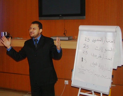 مع المدرب أثناء تقديم التمارين و الاستبيانات أمام الحاضرين .