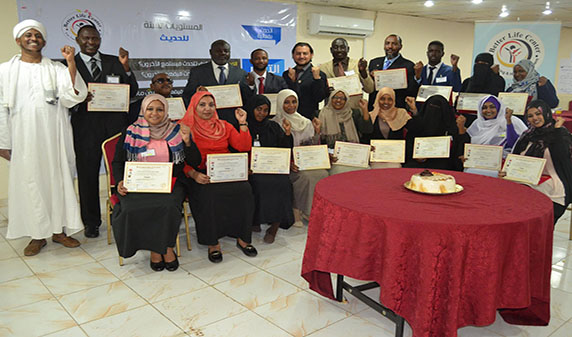 مركز بترلايف للتدريب الخرطوم ختام فعاليات دورة إعداد المدرب المحترف رقم40 أختتمت بقاعة مركز بترلايف للتدريب دورة إعداد المدرب المحترف والتي إستمرت لمدة سبعة أيام متتالية من13أغسطس وحتى 19أغسطس2017 حيث ضمت الدورة رقم40 مجموعة متميزة من المتدربين من تخصصات ومجالات مختلفة (أطباء-أساتذة جامعات-وموظفون من مؤسسات مختلفة)الأمر الذي ميز الدورة مما كان له الأثر الكبير في التحصيل المعرفي والمهاري قدم الدورة صانع المدربين المدرب الإستشاري دكتور توني بيتر بمساعدة المدربة نجود نقد الدفعة40 مجموعة متميزة من المدربين الجدد نثق في وضع بصمتها في المجتمع وفي مجال التدريب