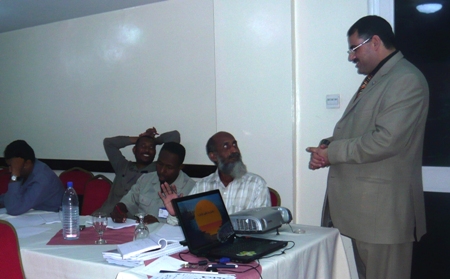 وبالنيابة عن المجموعة قدم م. عبدالخالق مجذوب كلمة شكر للمدرب د. محمد يوسف على تقديمه كم متجانس من المعلومات المفيدة في الدورة التي تركت اثراً علمياً في أذهان المجموعة في جو من الحميمية بينهم وبين المدرب, كما قدموا هدية تذكار تعبيراً عن شكرهم.