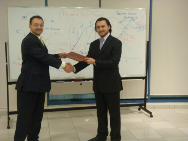 البروفيسور مراد و المدرب الاستشارى تونى بيتر و تسليم عقد الفرنشايز